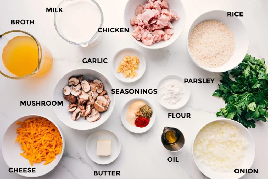 Tender chicken cooked with soft rice in a creamy, flavorful sauce.