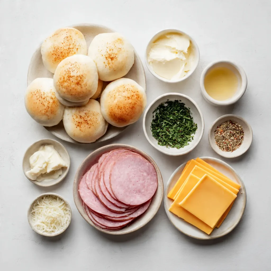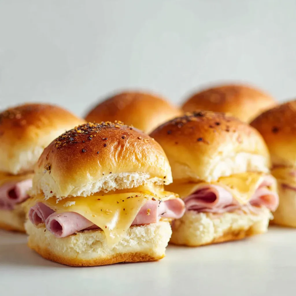 kcalSoft, sweet rolls filled with savory ham and melted cheese, brushed with buttery topping and baked until warm and golden. Easy, comforting, and perfect for busy days or family meals.