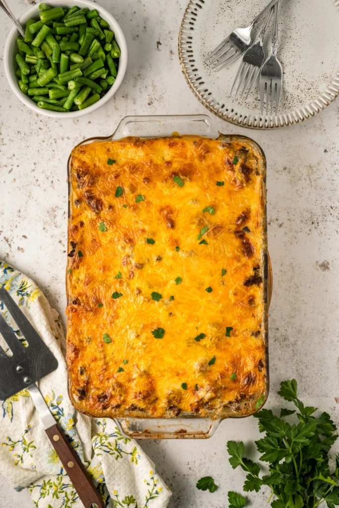 For the best flavor, use fresh ground beef with a little fat content to keep the casserole moist and rich.