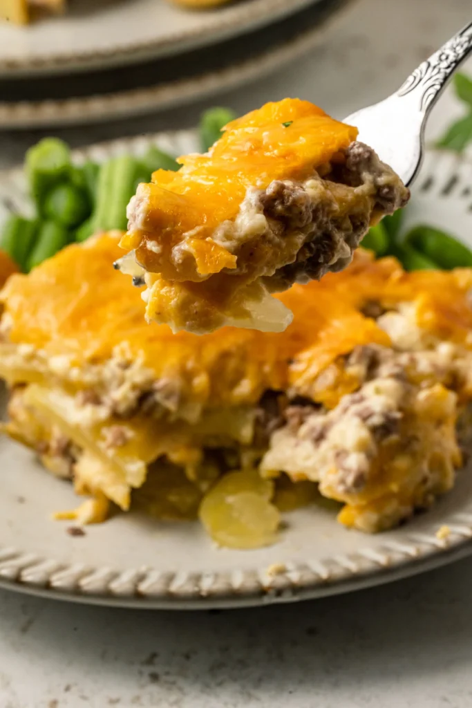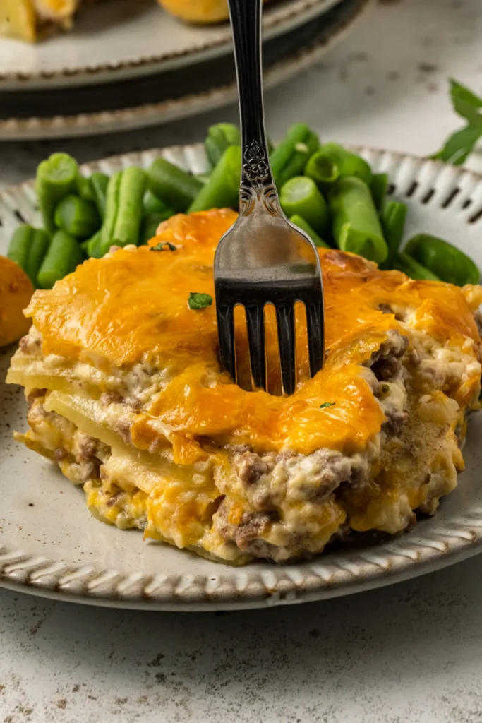 kcalA hearty layered casserole made with ground beef, potatoes, and a creamy sauce.