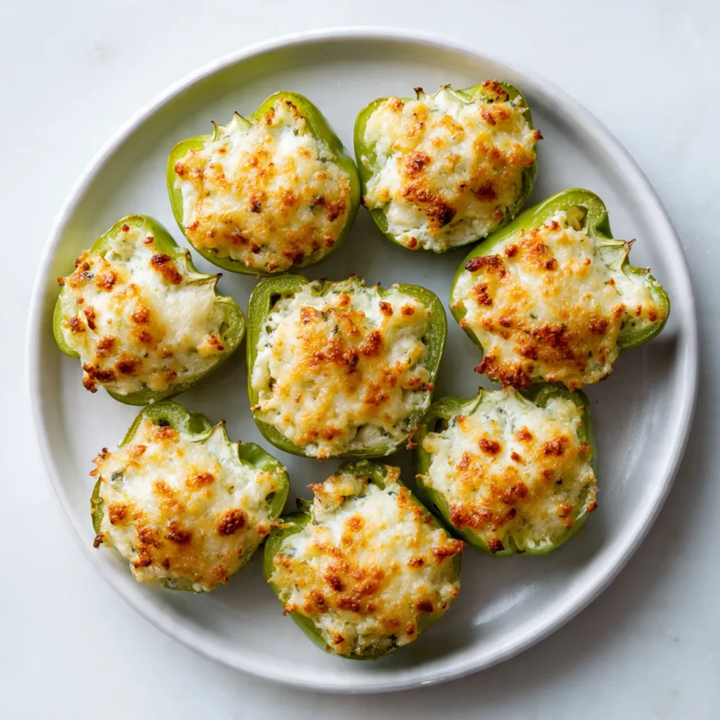 Bake 20–25 minutes until bacon is crisp and cheese is bubbly. If not using bacon, bake until cheese is golden and jalapenos are tender. Allow poppers to cool slightly before serving for easier handling.