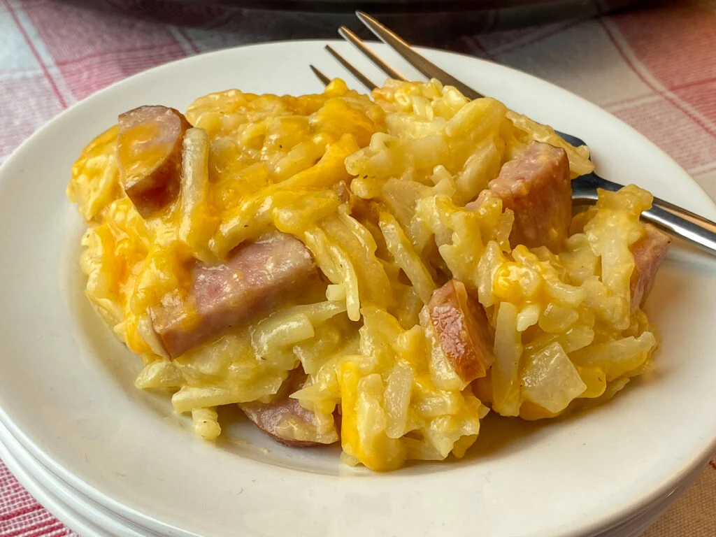 A warm and hearty casserole made with tender potatoes, smoky sausage, and melted cheese. Easy to prepare and perfect for family dinners.