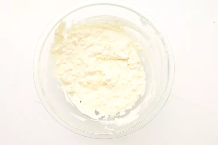 • Add cottage cheese, sour cream, mayonnaise, cheddar cheese, and seasonings. Mix well.