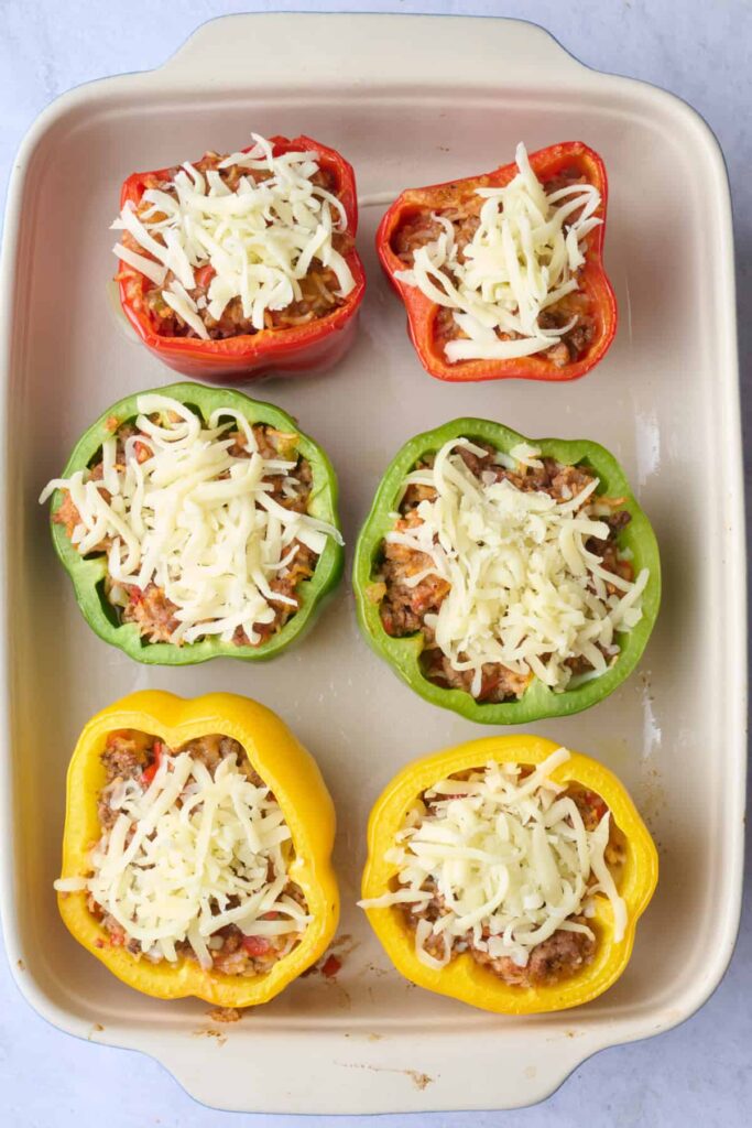 - Don’t overfill the peppers too tightly, as the filling needs a little space to heat evenly.